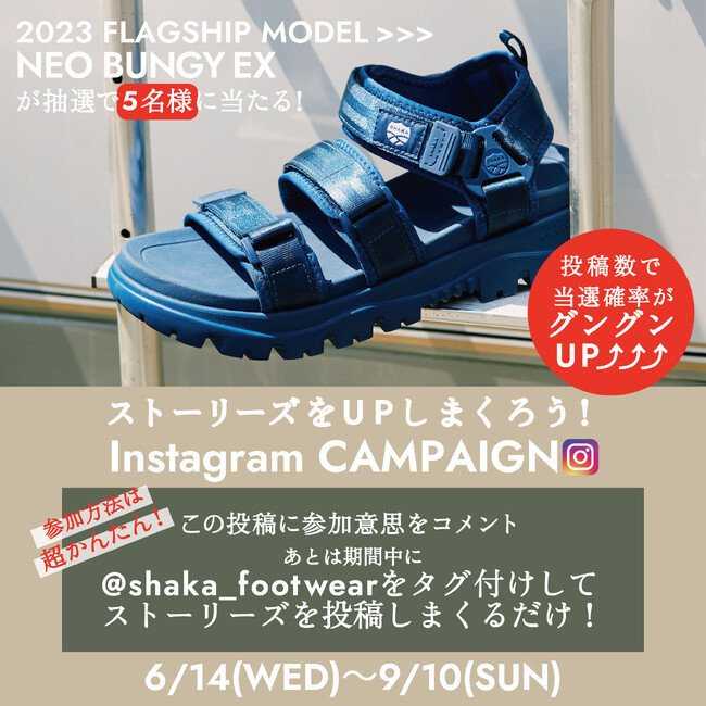 2023春夏フラッグシップモデル『NEO BUNGY EX』が5名様に当たるスペシャルな内容となっています。