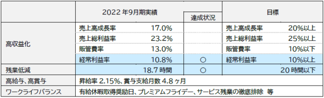 経営方針で定める各目標についての取組みは以下のとおりです。引き続き全ての目標の達成に向けて取り組んでまいります。