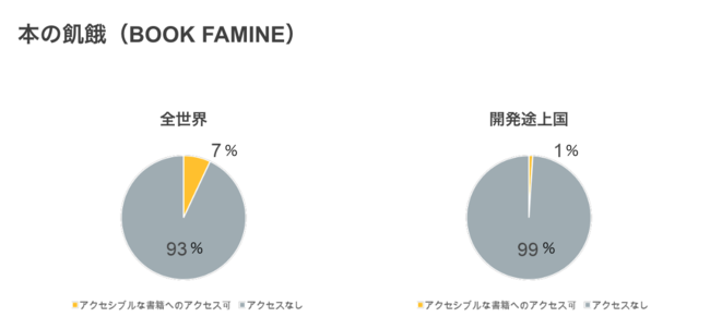 発展途上国に暮らす障害者が利用可能な書籍(点字、音声、大活字本など)は非常に限られ、毎年出版される本の中でわずか1%以下と推定されます。世界盲人連合(WBU)はこの状況を「本の飢餓(book famine)」と名付けました。