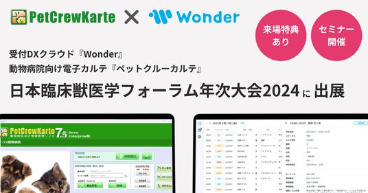 共同ブースでは、『Wonder』『ペットクルーカルテ』それぞれの活用方法はもちろん、連携機能について具体的にご紹介いたします。