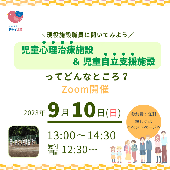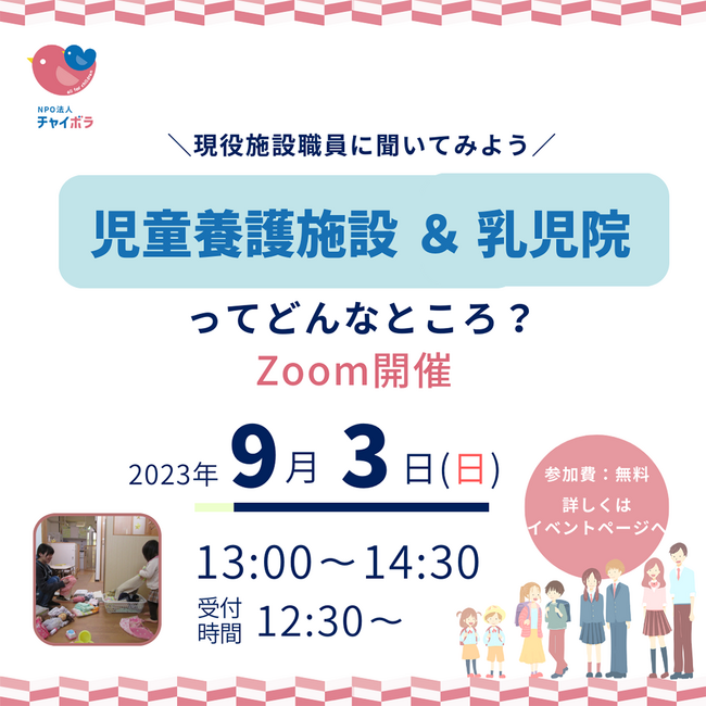 特定非営利活動法人チャイボラ(所在:東京都豊島区、代表理事:大山 遥、以下「チャイボラ」)は、児童福祉業界初の試みとなる、施設種別で分けたオンライン説明会を開催いたします。