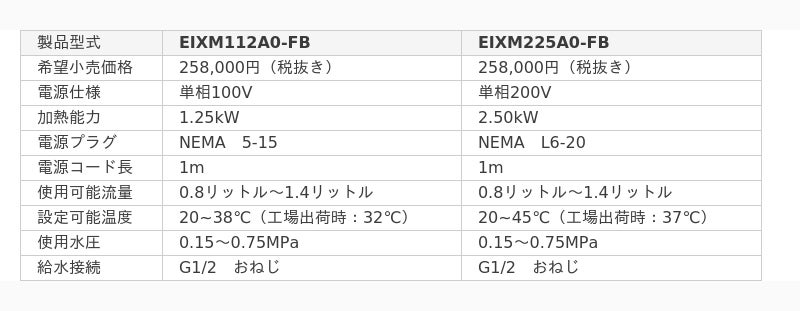 超小型省エネ電気瞬間湯沸器 EIXMミラブル自動水栓モデル