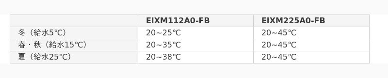 本製品は、給水温度が下がり流量が加熱能力を上回ると設定温度が保てない可能性がございます。あらかじめ季節ごとの設定可能温度をご確認ください。