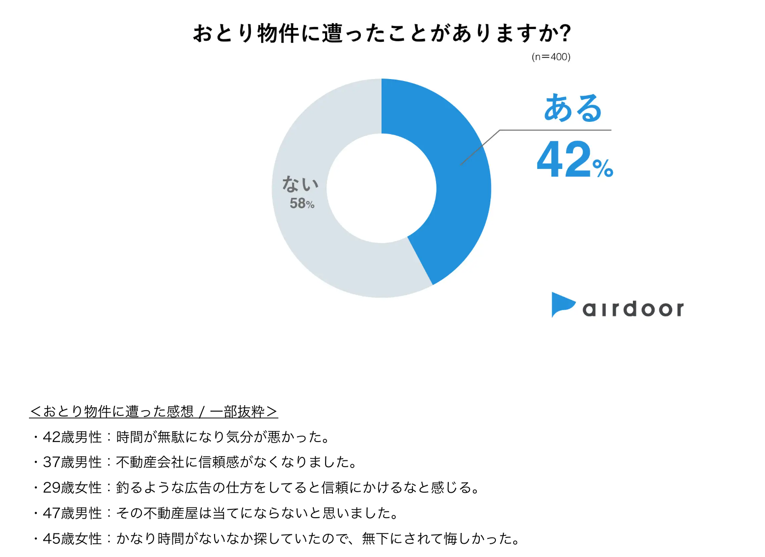 賃貸物件の約4割で、カスタマーが「おとり物件」に遭遇した経験があります。