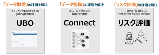 マネー・ローンダリング等の金融犯罪は、年々手口が巧妙化し、その規模も拡大しています。 犯罪収益の凍結、差押えが困難な理由の1つに、フロント企業や架空取引などによる犯罪者の隠蔽があります。国内外の法令・ガイドライン等は、金融機関に顧客の実質的支配者や取引先を特定し、リスク評価することを求めています。しかし、その実行は容易ではありません。