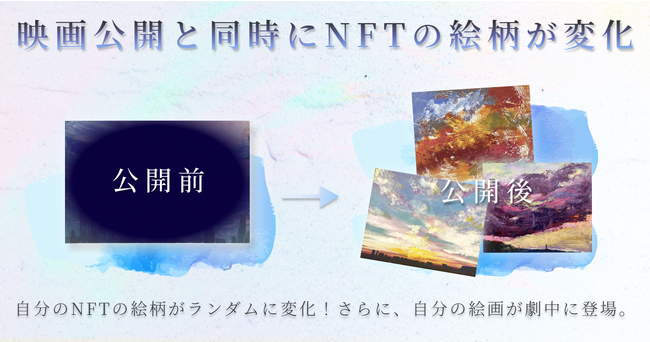 ・映画公開と同時にNFTの絵柄が劇中に登場する絵画に変化する映画オリジナルアート(全53種類)