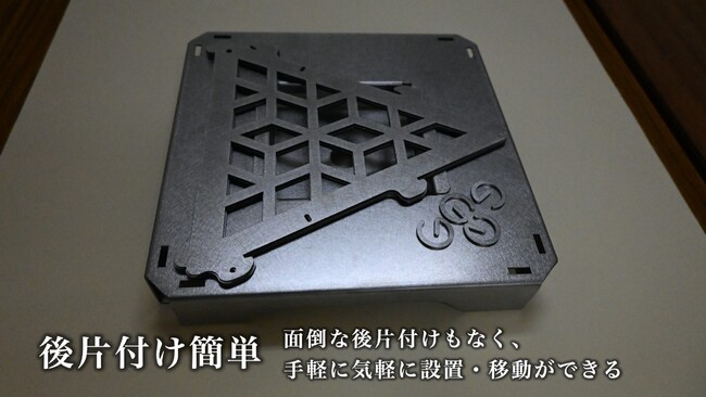 また、自宅の庭を使ったBBQでも、安全性や周りへの配慮も考慮すると、中々焚き火は難しいです。そんな、『焚き火の代わりとなるアイテムが欲しい』をカタチにしました。