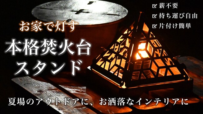 岐阜発祥の町工場集団「giant-salamander」を運営する、株式会社PUZZLCE(所在地:東京都中央区八丁堀、代表:小池恭平 https://puzzlce.com/)は、ランタンやキャンドルを使って、お家で本格的な焚き火気分を味わえる「焚き火台スタンド」をクラウドファンディングサービスMakuakeで先行販売開始しました。
