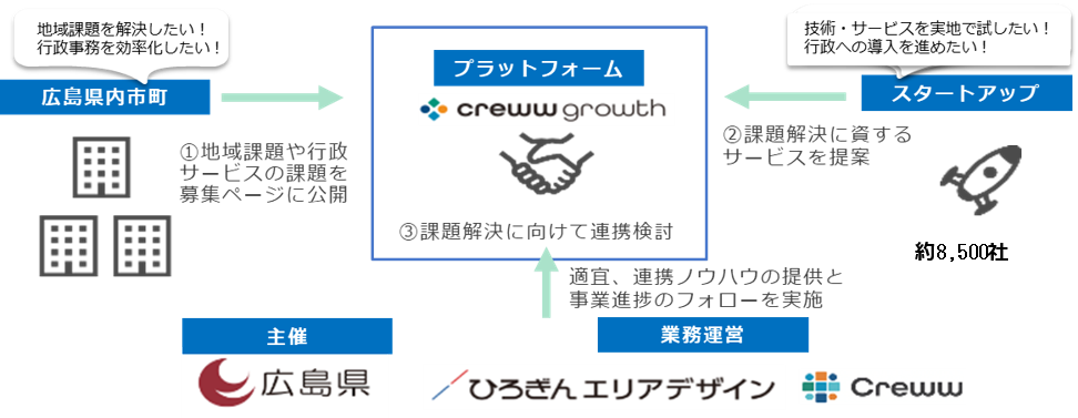 ※参加市町に採択されたスタートアップ企業等には、広島県より支援金の拠出を予定しています。