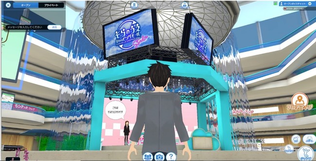 実際の商業施設のように、いくつものお店をウィンドウショッピングしてお店を物色したり、店内を見て回って、欲しいものを探したり、ショップ内からつながっている通販サイトでオンラインショッピングも楽しめるし、展示イベントや、コンサートなどのオンラインイベントも楽しめます。