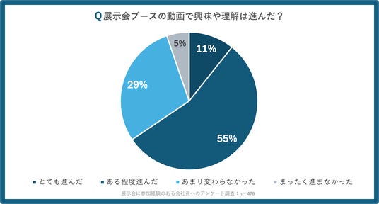 ・展示会ブースの動画によって商品やサービスへの興味や理解が進んだとの回答が約6.5割