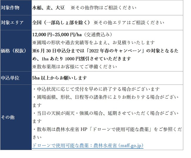 1.おまかせeドローン(散布代行)の2022年度提供条件