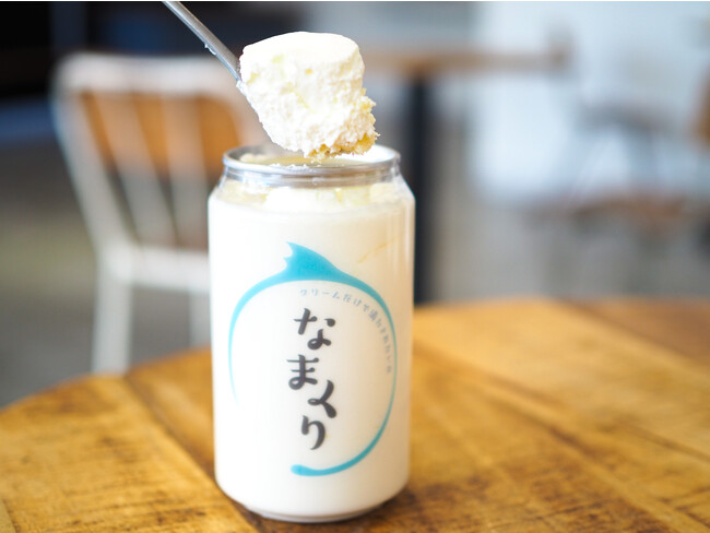 9割が特製クリームでできた奇想天外スイーツ缶『なまくり』。生クリーム好きにはたまらないと既にSHIBUYA109渋谷店等で人気爆発中!昨年4月の発売開始から1年を待たずに累計販売数5万缶を突破。口に入れると舌でとろけて、濃厚なのにぺろりと完食してしまう逸品は、SNSやTVでも好評。味だけではなく、クリームだけで埋め尽くされた真っ白な缶のビジュアルは、SNS戦国時代の若者を中心に大ヒット。近年の流行である自販機型販売という発売形態もブランドの魅力の一つである。今回の新味『かすたーど』と同時にミニ缶の250mlサイズも発売開始!