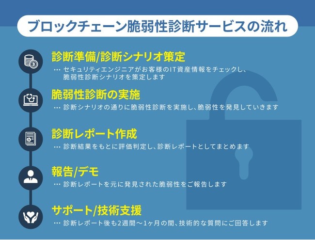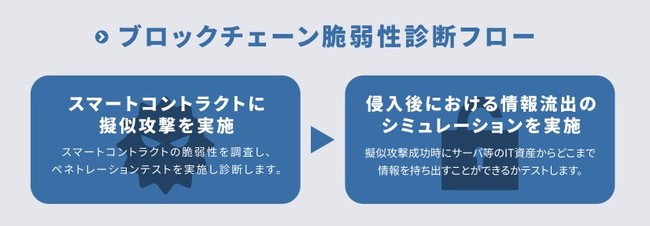 これらの現状を踏まえ、当社はこれまでWebアプリケーションやiOS・Androidアプリなどの先進的な脆弱性診断サービス提供しておりましたが、この度サイバーセキュリティ事業を専門とするGMOサイバーセキュリティ byイエラエ株式会社と業務提携し、ブロックチェーンの脆弱性診断を行うサービスを提供することとなりました。