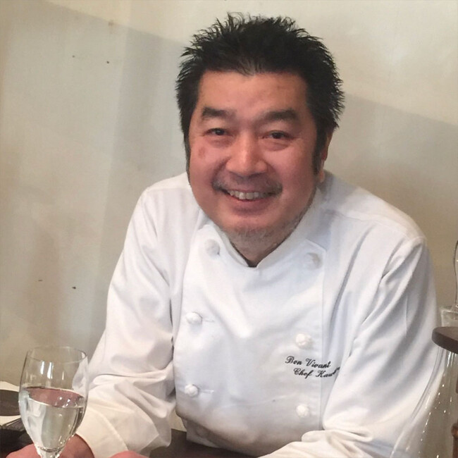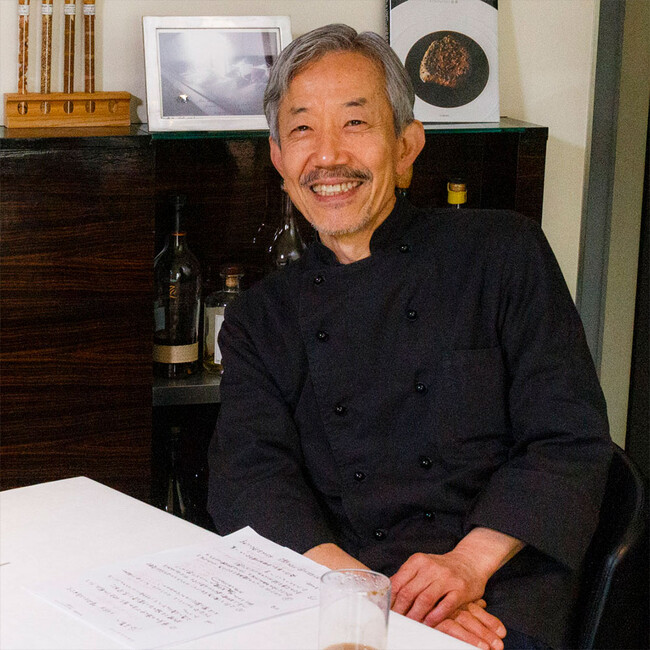 1952年東京都新宿区生まれ。高校卒業後、服部栄養専門学校に入学、在学中から六本木「イル・ド・フランス」で働く。24歳で渡仏、帰国後はレストラン数軒のシェフ、調理師学校講師を経て、37歳で再渡仏。「Crocodile」「JeanSchillinger」で修業、帰国後は「オーシザーブル」シェフ、94年「ル・マンジュ・トゥー」を開店。「素描するフランス料理」に始まり、鼎談集「フランス料理にもの申す」「ル・マンジュ・トゥーの全仕事」(共に柴田書店)など著書多数。料理に対する実直な発言でも知られる。