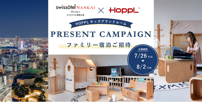 「子育てをデザインする」をコンセプトに家具・インテリアブランドを展開する株式会社Noz(所在地:兵庫県宝塚市、代表取締役社長:野澤重幸 のざわ しげゆき)とスイスホテル南海大阪がコラボした「HOPPLキッズグランドルーム」。コラボルーム誕生を記念し、オフィシャルインスタグラム(@hoppl_official)にて、宿泊ご招待キャンペーンを実施します。