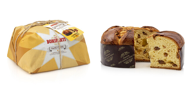 1932年、天然酵母を使ったベーカリーとしてピエモンテ州トリノのヴィッラフランカで創業。特有の甘く芳醇な香りと、しっとりと柔らかな生地はボニファンティならでは。バター、ヘーゼルナッツ、チョコレート、放し飼いの鶏の卵など、厳選された原材料に、南イタリア産のシトロンピール、トルコ産のレーズン、マダガスカル産のバニラビーンズなどを加えて作られる上質な味わいをお楽しみください。