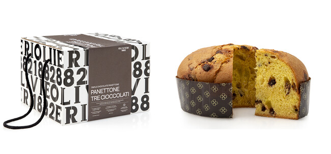 小麦粉、天然酵母、バター、新鮮な卵黄で作った伝統的なパネットーネ生地に、3種のチョコレートを混ぜ込んだ贅沢な味わいのパネットーネ。