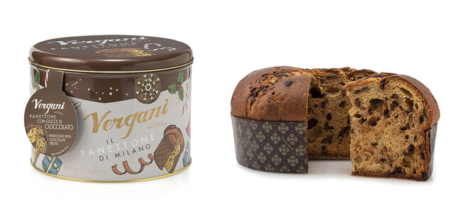 ビターチョコレートチップをたっぷり練り込んで作られています。カカオは異なる産地の豆をブレンドし、パネットーネに合わせた香りのいいチョコレートをイタリアで生産し使用しています。ギフトにもお勧めの缶に入った商品です。