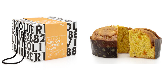 アプリコット入りパネットーネは、ジューシーなアプリコットと塩キャラメルを加えた芳醇で贅沢な味わい。