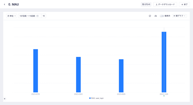 まず、全体感を得るためにMAU(月次のアクティブユーザー数)を見てみよう。2023年7月から9月までの平均値と比較して1.8倍と約2倍近い伸びを見せている。