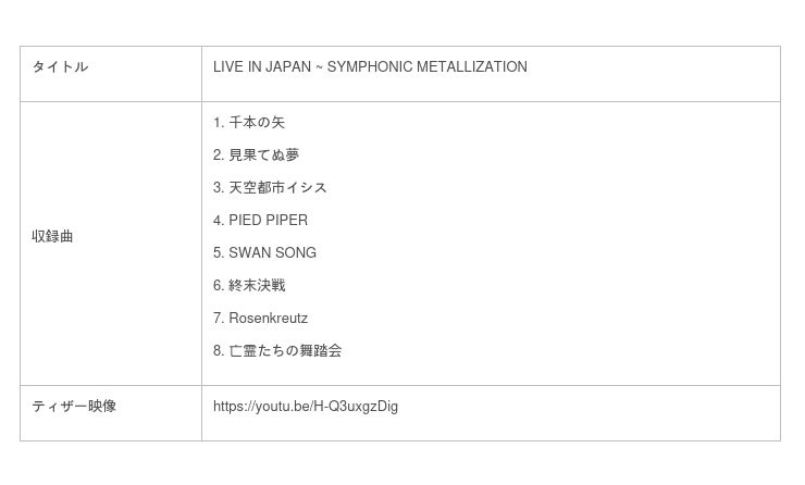 ※全楽曲SYMPHONIC METALLIZATION LIVE ver.になります