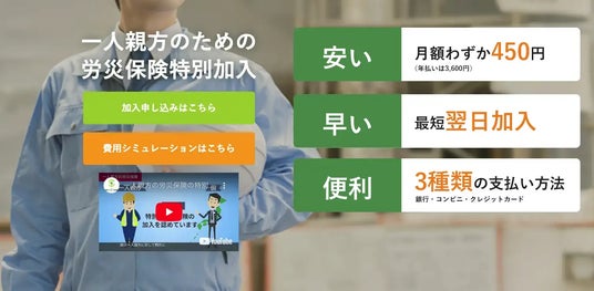 最短翌日加入できる、一人親方における最安値の労災保険です。労災保険の特別加入をご検討されている方は、下記のボタンからお申し込みをお待ちしております。