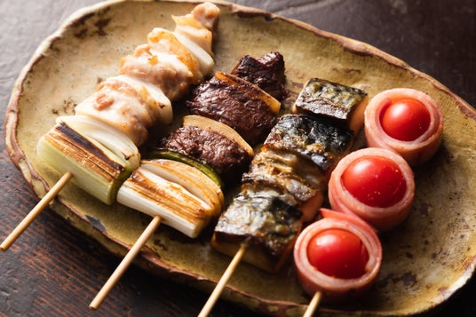 久留米焼きとりの特徴は、その品数の多さです。串に刺したら何でも「焼きとり」となります。鶏や豚、牛、馬、魚介類、野菜、巻物などを竹串にさし、炭火でじっくりと焼きあげます。そして、焼きとりには酢ダレがかかったキャベツが添えられ、肉の間に玉ねぎが挟まれていることが多いです。また、内臓ものの品数が多いのも特徴です。その中でも、「ダルム」と呼ばれる豚・牛・馬の白モツの人気が高く、久留米焼きとりには欠かせない存在です。