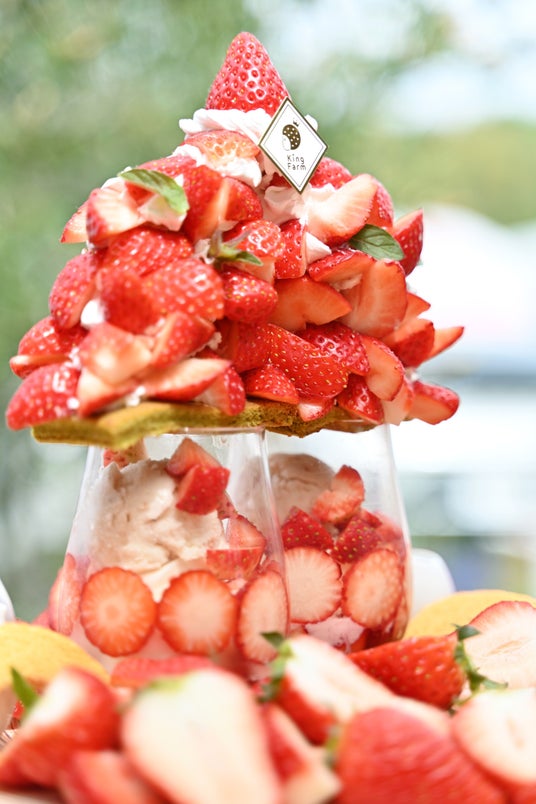 株式会社キングファームが運営するKing Farm Cafe(愛知県西尾市)では2024年4月19日より1キログラム以上のいちごを使用した「いちご畑パフェ」を完全予約制で販売を開始致します。