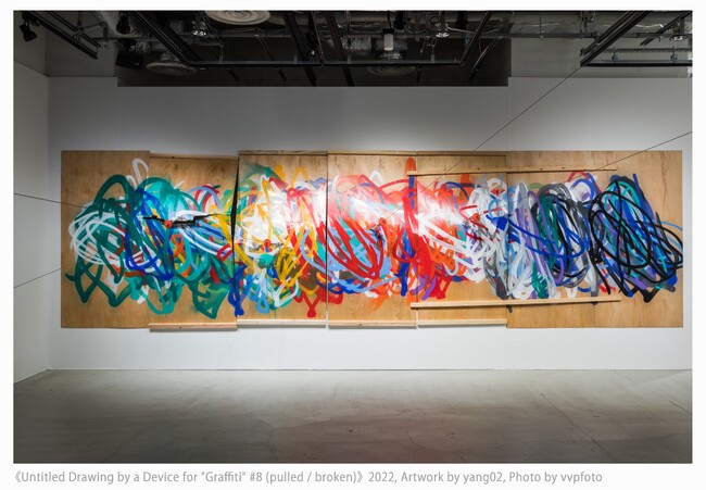 やんツーは、ダダイズムやキネティックアートの潮流を現代にアップデートしたドローイングマシンを開発、スプレー缶やペンなどでマシンが自動的に描く”グラフィティ”など、人間の身体性や表現の主体性を問い直す作品を数多く制作しています。その多くは都市の廃材などを集めて制作され、都市やアートワールドの構造、そしてテクノロジーと人間や社会に対する批評的な視座を含む複層的な作品を数多く発表してきました。