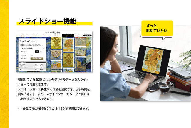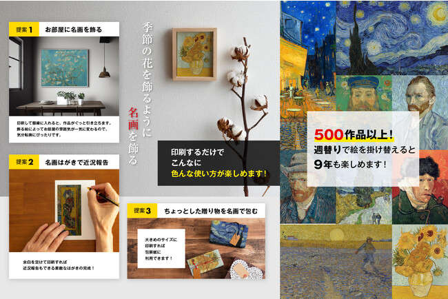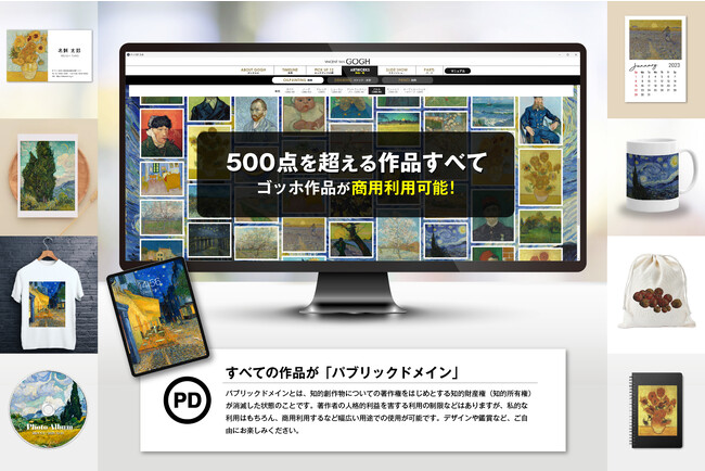収録しているデジタルデータの「ひまわり」「糸杉」など、ゴッホ名画すべてが商用利用可能なパブリックドメインです。