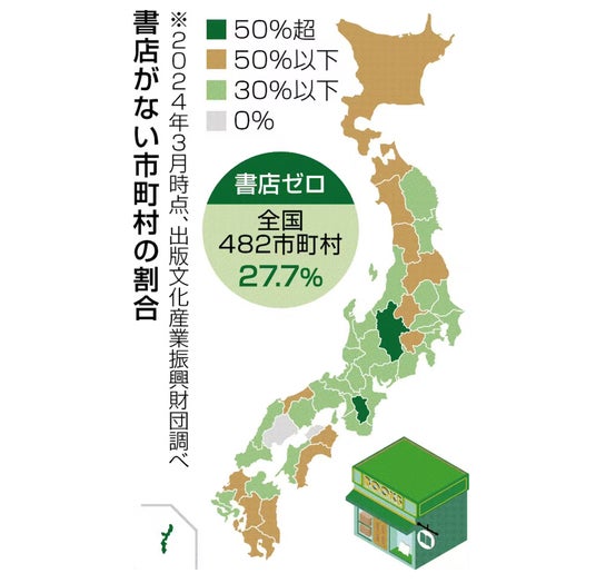 ■ 書店減少が深刻化する日本、沖縄県の書店ゼロ自治体比率は56.1%
