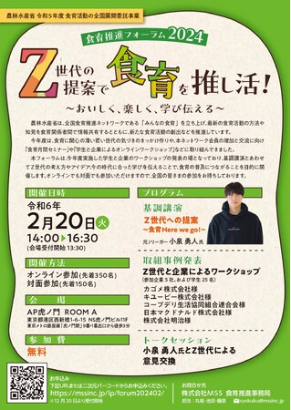 令和6年2月20日(火)に「食育推進フォーラム2024」(株式会社MSS受託)が開催されますので、ご案内いたします。