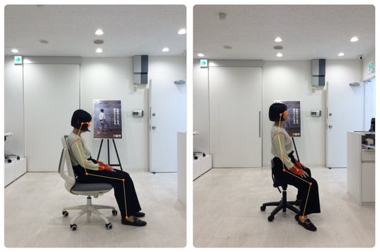 AI を使った姿勢診断。普通のイスとアーユル・チェアーに座った時の違いをご覧いただけます。