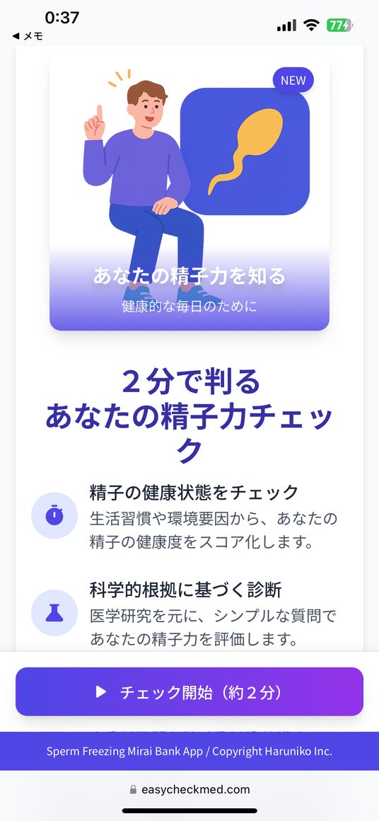 ○ スマホ用「精子力チェッカー」https://easycheckmed.com/seishi-checker/