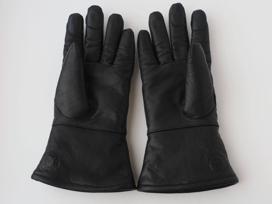 GAUNTLETはスムースレザーの内部に防風・防水フィルムとボアを搭載した3層構造。手首まで覆うガントレットデザインで風の侵入を防ぎ、冬季のライディングに最適。