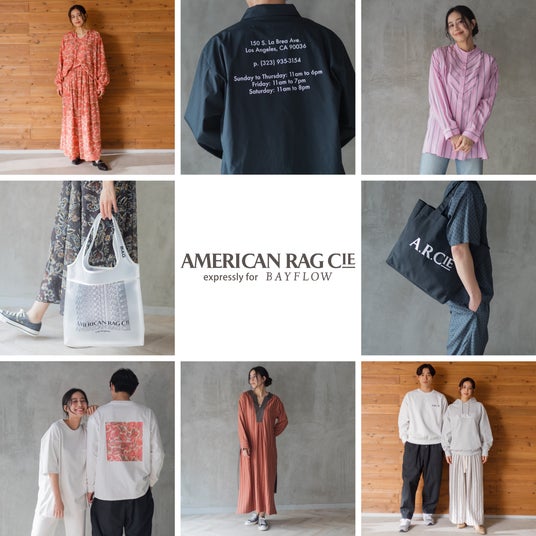 株式会社レオン・インターナショナル(代表取締役社長:林真吾/所在地:東京都渋谷区)が展開するセレクトショップAMERICAN RAG CIE(アメリカンラグシー)とBAYFLOW(ベイフロー)とのスペシャルコラボレーションラインがスタート。