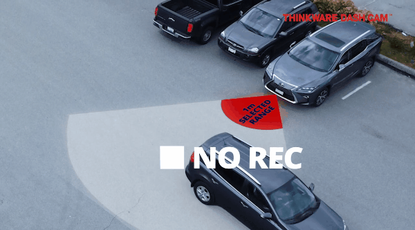 レーダー検知モードでは車両の遠方を通過する動きに対しては反応せず、車両に近づく動きだけを検知して録画を開始します。