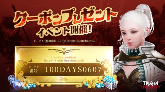 リリース100日を記念して、豪華なアイテムを獲得できるクーポンイベントを実施いたします。