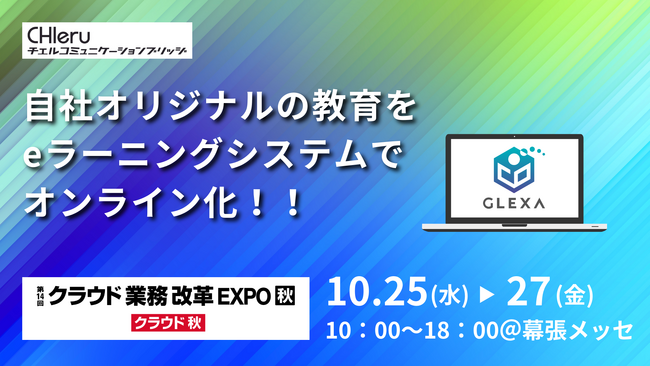 eラーニングシステム「GLEXA(グレクサ)https://glexa.jp/」の開発・販売を行うチエルコミュニケーションブリッジ株式会社(本社:東京都千代田区、代表取締役:関浩二朗、以下「チエルCB」)は、2023年10月25日(水)~27日(金)に幕張メッセで開催されます「Japan IT Weekクラウド業務改革EXPO秋」に出展いたします。
