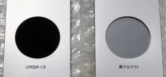 高圧UVランプによる耐候試験後のUMBめっきと黒アルマイトの退色性の違い