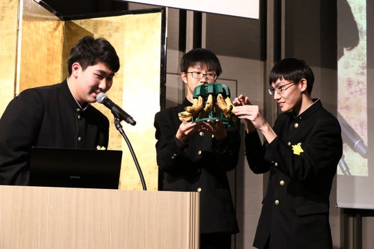 臼井翔哉さん、野村龍騎さん、上村龍生さん(岐阜県立岐南工業高等学校)「バナナスタンド」