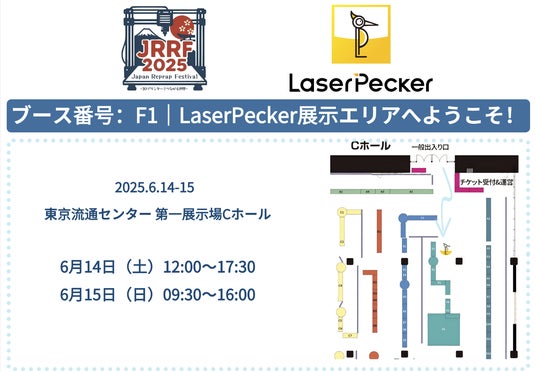 LaserPeckerは、2025年6月14日(土)~15日(日)に東京流通センター第一展示場Cホールにて開催される「Japan RepRap Festival 2025」への出展が決定いたしました。