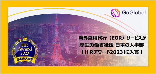 GoGlobal株式会社(港区、代表取締役;渡辺さち、沖室晃平、以下「GoGlobal」)が提供する「海外雇用代行(EOR)サービス」が、日本の人事部「HRアワード2023」(主催:「HRアワード」運営委員会、後援:厚生労働省)のプロフェッショナル部門に入賞しましたことを発表いたします。