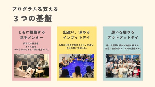 本事業は、高校生から大学院生を対象に、学生がそれぞれのキャリア選択の軸を形成していくことを目指した独自の教育プログラムを提供しています。