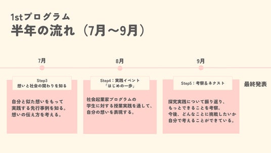 本事業では、キャリア形成段階に合わせた「1st: 自己理解プログラム」と「2nd: 自己探求プログラム」の2つのプログラムを提供しています。