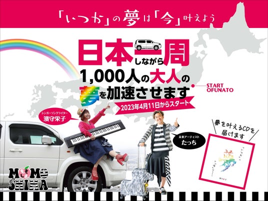 ももしまの2人(シンガーソングライター濱守栄子、未来アーティストたっち)は昨年、「1,000人の大人の夢を加速させる」ことを目標として、日本一周をしながら47都道府県で118日間ライブ公演をしました。