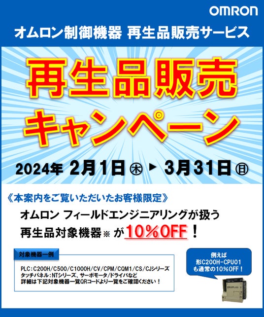 ■内容 :オムロン フィールドエンジニアリングが扱う再生品対象機器が10%OFF