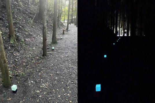 『ナイトコンシェルジュ』は、避難標識などに使われてきた蓄光素材をもっと創造的に活用するプロジェクトです。2022年に国土交通省のモデル事業として社会実験が実施され、9割の利用者から継続設置を希望する声が上がり、その後実用化されました。