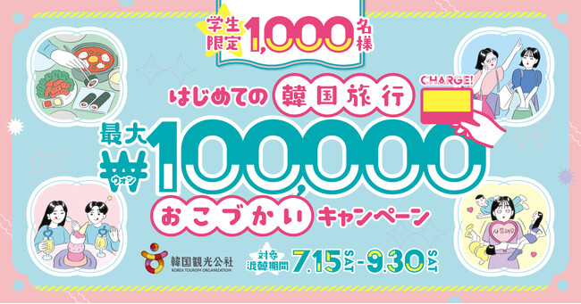 韓国観光公社東京支社は、6/1(木)より、学生向け訪韓キャンペーンとして、抽選で1,000名に当たるおこづかいキャンペーン・Kカルチャーの魅力を伝える学生アンバサダーの募集を開始しました。